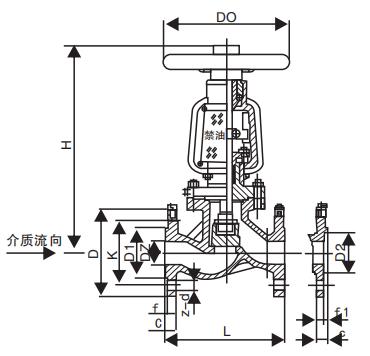 YJ41W 氧氣截止閥主要外形尺寸: