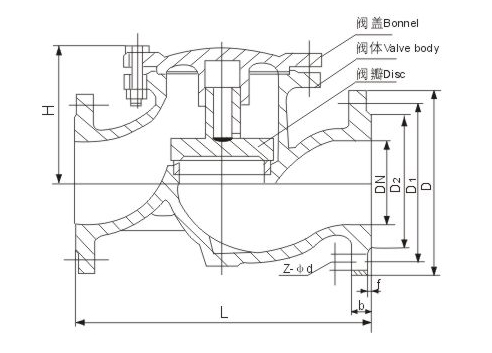 H41W/H國標(biāo)升降式止回閥主要外形尺寸