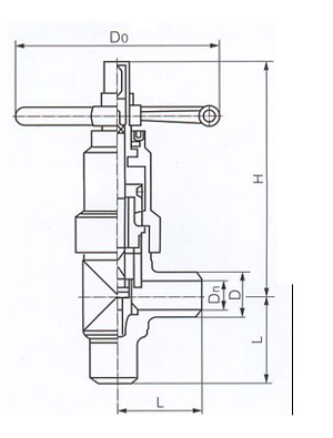 J6B7Y角式節流截止閥外形及連接尺寸
