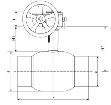 Q367F固定蝸輪式焊接球閥產品尺寸:  PN16/PN20/CLASS150